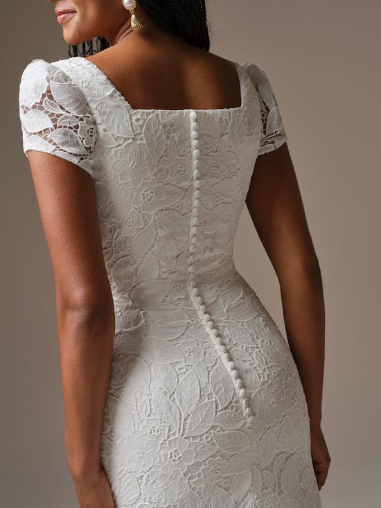 For brides of both style and substance — we insist a modest style should transcend in fit, form, and function. Here’s a square neck lace mermaid wedding dress for both your luxe and effortless sensibilities.